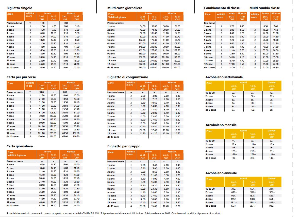 ティチーノ州で運営されている一部の登山電車等を除くほぼ全ての公共交通機関が